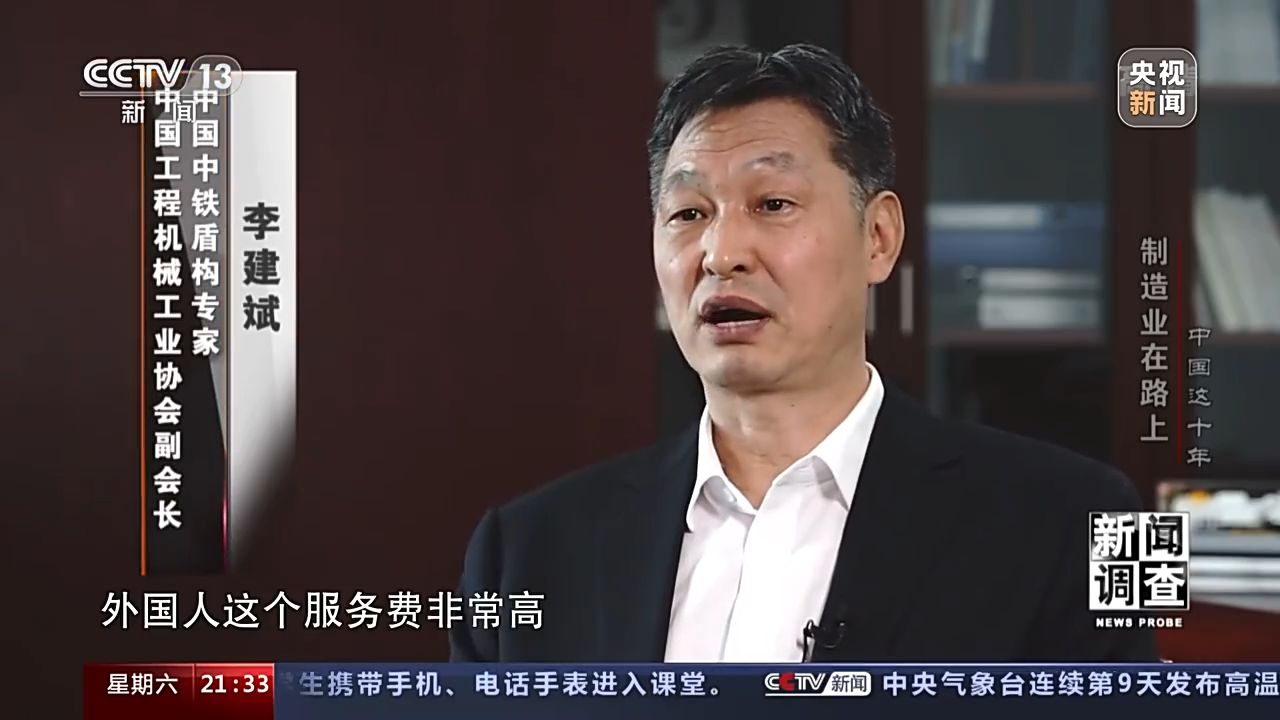 中國工程機械工業(yè)協(xié)會副會長 中國中鐵盾構專家 李建斌:兩臺將近七個億,外國人這個服務費非常高,服務的時間非常短,每天就是八小時,過了人家不上班,我們是三班制,他是一班制,機器壞了我們就要等,這個是對我們刺激非常大,你不掌握技術,所以說你處處受制于人。