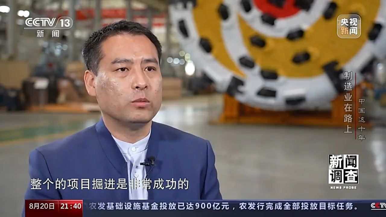 中鐵工程裝備集團有限公司總經(jīng)理 張志國:(工程)當中設備它通過了,一個大的球一樣的巖石,這個是當時在地質勘察階段是沒有發(fā)現(xiàn)的,但是就是因為盾構機設計的它的性能是比較好的,整個的項目掘進是非常成功的。