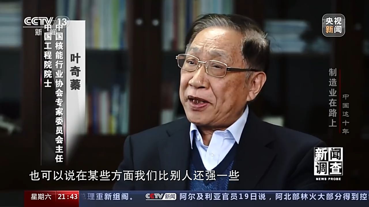 中國工程院院士 中國核能行業(yè)協(xié)會專家委員會主任 葉奇蓁:從總的技術水平可以這樣說,我們已經(jīng)從跟跑進入了并跑,也可以說在某些方面我們比別人還強一些。