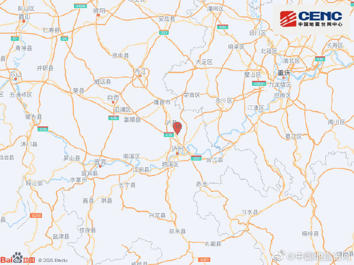四川瀘州市龍馬潭區(qū)發(fā)生3.9級地震 震源深度10千米