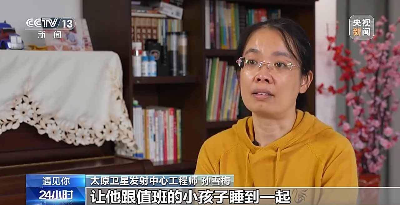 太原衛(wèi)星發(fā)射中心工程師 孫雪梅:尤其是忙起來的時(shí)候,真想找個(gè)人替我一把,但是又沒有,然后就覺得要是他在,就能幫你一下,咬牙克服,很難。比如說,孩子很小的時(shí)候,他不在,我晚上還要去加班,我就抱著他,我們樓里面有個(gè)值班室,讓他跟值班的小孩子睡到一起,我凌晨加班結(jié)束了,再把他抱回來。