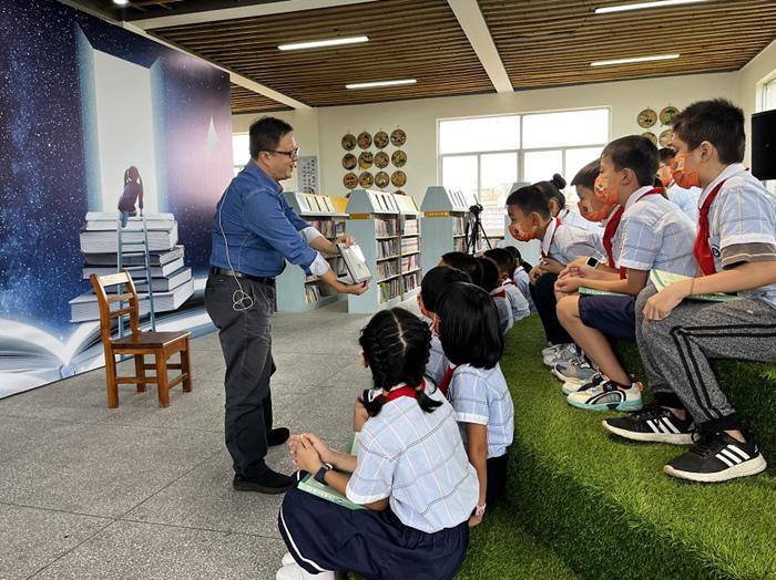 金秋9月開(kāi)學(xué)季,浙江省衢州江山長(zhǎng)臺(tái)尚赫孫美芳公益小學(xué)的同學(xué)們不僅在圖書(shū)室里看到了一批嶄新的圖書(shū),還迎來(lái)了“神秘大咖”——一位會(huì)講中國(guó)神話(huà)故事、能和他們一起讀書(shū)的新“老師”。在充滿(mǎn)墨香的尚赫?qǐng)D書(shū)室里,一場(chǎng)別開(kāi)生面的讀書(shū)分享會(huì)在這里展開(kāi),“夸父逐日”、“開(kāi)天辟地”等勵(lì)志神話(huà)故事不僅讓同學(xué)們聽(tīng)的津津有味,也開(kāi)啟了一場(chǎng)“大咖老師”與“10后新生代”的中國(guó)傳統(tǒng)文化探秘之旅。