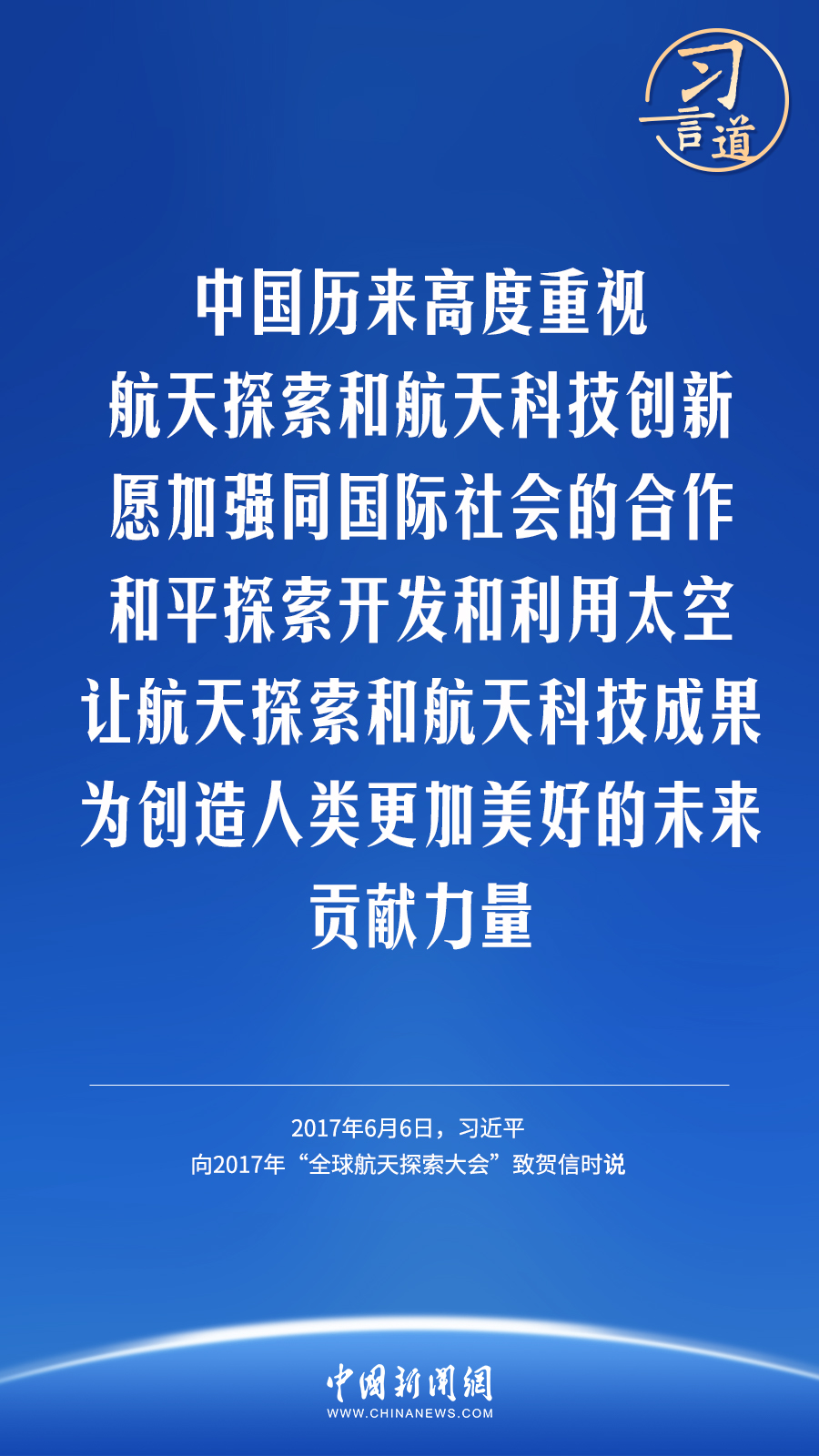 【飛天圓夢】習(xí)言道|“推動(dòng)航天事業(yè)造福全人類”