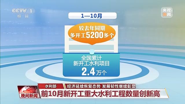 水利部今天發(fā)布數(shù)據(jù)顯示:1—10月,全國累計新開工水利項目2.4萬個,較去年同期多開工5200多個,其中新開工重大水利工程45項,創(chuàng)歷史新高。