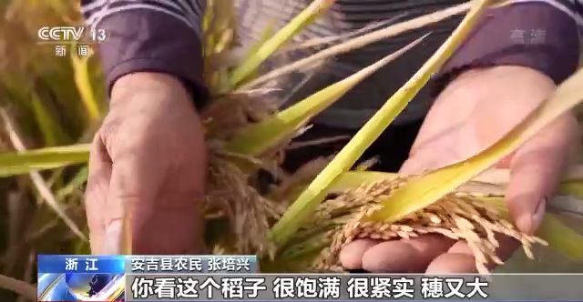 浙江省安吉縣農(nóng)民 張培興:你看這個(gè)稻子,很飽滿、緊實(shí),穗又大,稻子千粒重也比往年要重。已經(jīng)到達(dá)我的預(yù)期了,我很開(kāi)心。