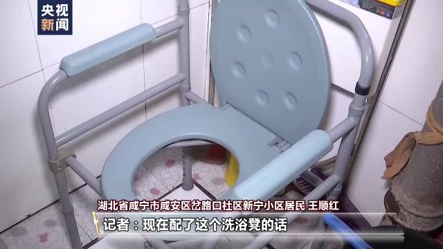 湖北省咸寧市咸安區(qū)岔路口社區(qū)新寧小區(qū)居民 王順紅:原來(lái)就用盆,給他擦洗?,F(xiàn)在方便多了,洗浴凳又穩(wěn),不怕摔跤,帶來(lái)很大的方便。