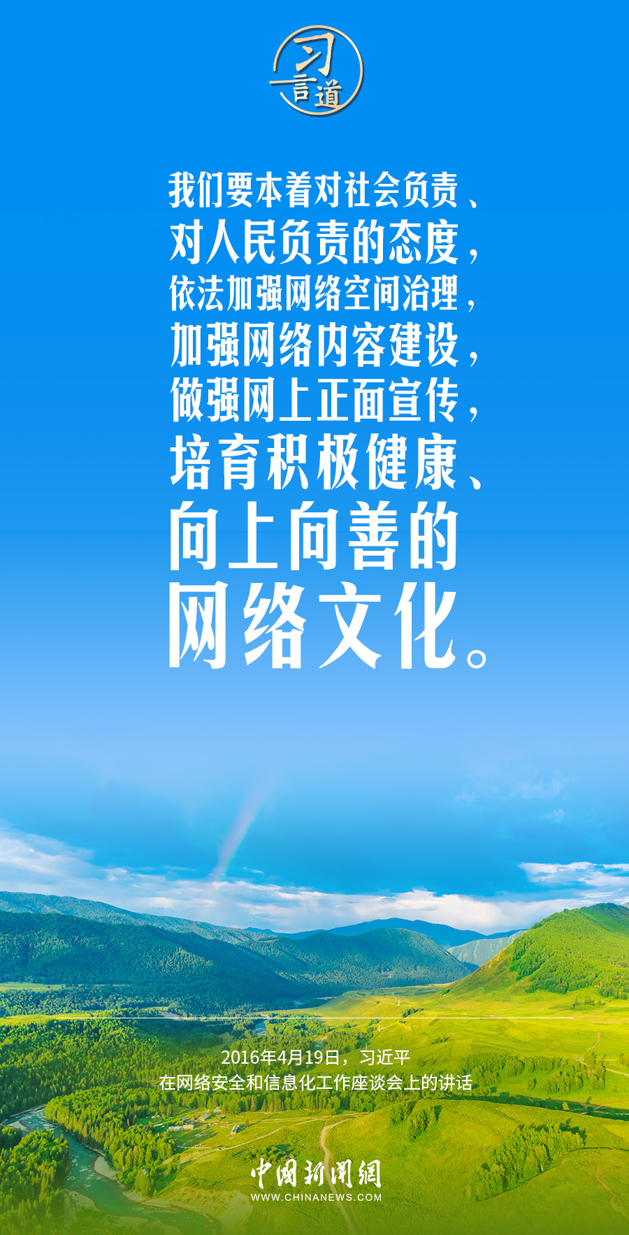 互聯(lián)網(wǎng)不是法外之地。習近平總書記高度重視網(wǎng)絡(luò)空間法治化建設(shè),多次強調(diào)依法治網(wǎng),營造風清氣正的網(wǎng)絡(luò)空間。