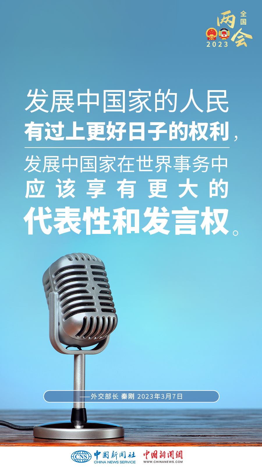 秦剛:發(fā)展中國家占世界人口總數(shù)的80%以上,對世界經濟增長的貢獻率超過70%。發(fā)展中國家的人民有過上更好日子的權利,發(fā)展中國家在世界事務中應該享有更大的代表性和發(fā)言權。