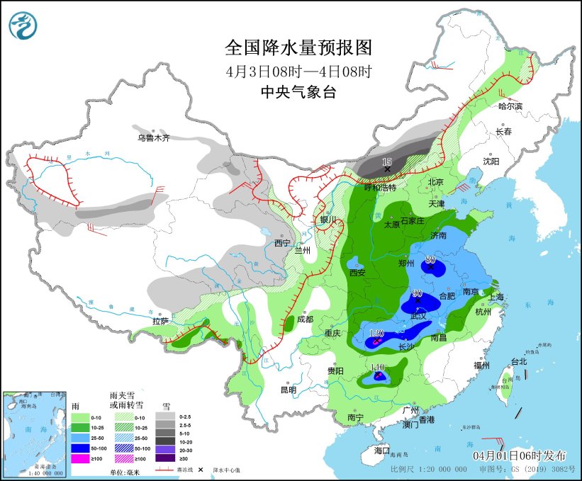 明天開始,大范圍雨雪將鋪展開來,內(nèi)蒙古河套地區(qū)、西藏東部、西北地區(qū)東部、華北南部和西部、黃淮西部、江漢、江南北部、西南地區(qū)東北部等地部分地區(qū)有中到大雨,其中,河南南部、湖北北部和南部、湖南北部等地部分地區(qū)有暴雨或大暴雨。預(yù)計(jì)本輪雨雪天氣過程主要出現(xiàn)時(shí)段在4月2日至4日。