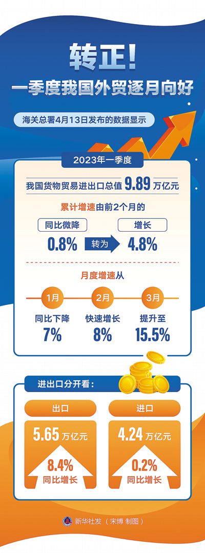 -7%、8%、15.5%,一季度3個月份,中國外貿(mào)跑出了進出口增速的向上曲線,也跑出了復(fù)雜背景下全年保穩(wěn)提質(zhì)的篤定和信心。