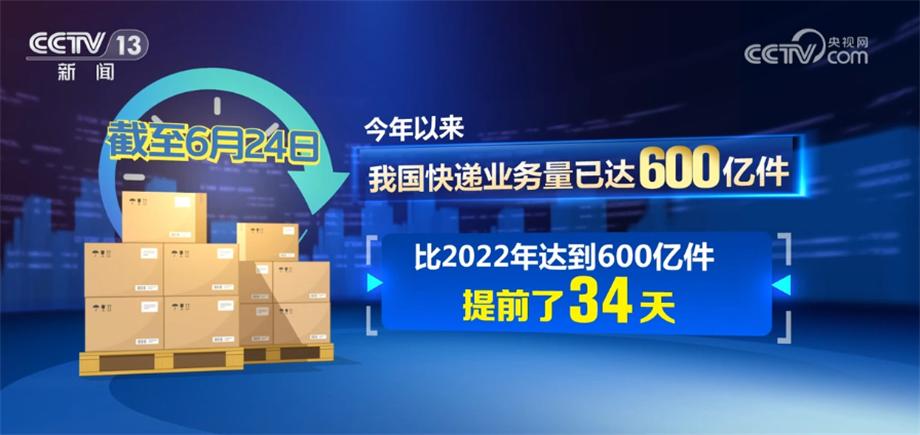 國家郵政局?jǐn)?shù)據(jù)顯示,截至6月24日,今年以來我國快遞業(yè)務(wù)量已達(dá)600億件,比2022年達(dá)到600億件提前了34天。