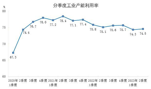 國(guó)家統(tǒng)計(jì)局:2023年二季度全國(guó)工業(yè)產(chǎn)能利用率為74.5%