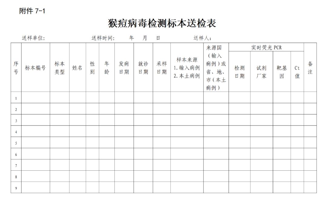 7-1猴痘病毒檢測(cè)標(biāo)本送檢表