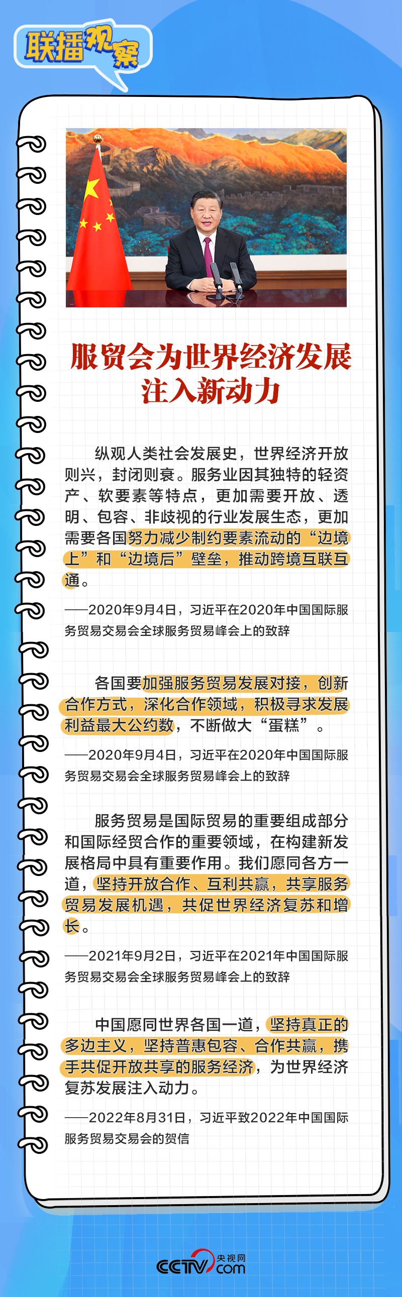 |聯播+|“當前,百年變局加速演進,世界經濟復蘇動力不足。服務貿易是國際貿易的重要組成部分,服務業(yè)是國際經貿合作的重要領域”。9月2日上午,習近平主席在北京向2023年中國國際服務貿易交易會全球服務貿易峰會發(fā)表視頻致辭。