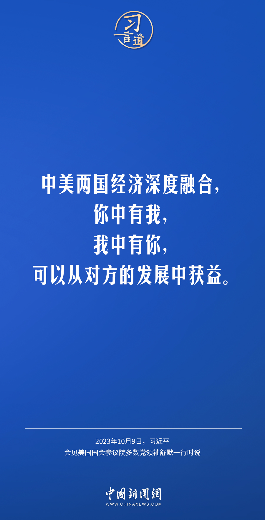 10月9日下午,國(guó)家主席習(xí)近平在人民大會(huì)堂會(huì)見美國(guó)國(guó)會(huì)參議院多數(shù)黨領(lǐng)袖舒默率領(lǐng)的美國(guó)國(guó)會(huì)參議院兩黨代表團(tuán)。習(xí)近平指出——