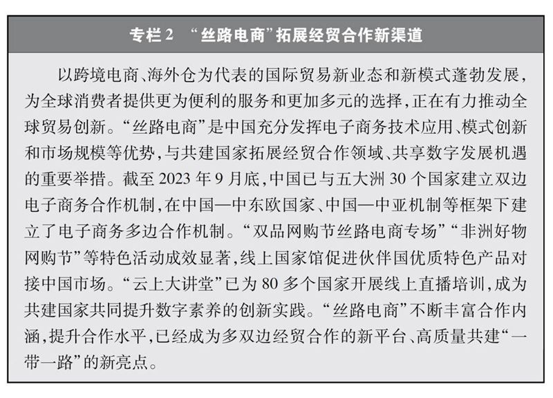 “數(shù)字絲綢之路”建設(shè)亮點紛呈。共建國家加強數(shù)字領(lǐng)域的規(guī)則標(biāo)準(zhǔn)聯(lián)通,推動區(qū)域性數(shù)字政策協(xié)調(diào),攜手打造開放、公平、公正、非歧視的數(shù)字發(fā)展環(huán)境。截至2022年底,中國已與17個國家簽署“數(shù)字絲綢之路”合作諒解備忘錄,與30個國家簽署電子商務(wù)合作諒解備忘錄,與18個國家和地區(qū)簽署《關(guān)于加強數(shù)字經(jīng)濟領(lǐng)域投資合作的諒解備忘錄》,提出并推動達(dá)成《全球數(shù)據(jù)安全倡議》《“一帶一路”數(shù)字經(jīng)濟國際合作倡議》《中國-東盟關(guān)于建立數(shù)字經(jīng)濟合作伙伴關(guān)系的倡議》《中阿數(shù)據(jù)安全合作倡議》《“中國+中亞五國”數(shù)據(jù)安全合作倡議》《金磚國家數(shù)字經(jīng)濟伙伴關(guān)系框架》等合作倡議,牽頭制定《跨境電商標(biāo)準(zhǔn)框架》。積極推進(jìn)數(shù)字基礎(chǔ)設(shè)施互聯(lián)互通,加快建設(shè)數(shù)字交通走廊,多條國際海底光纜建設(shè)取得積極進(jìn)展,構(gòu)建起130套跨境陸纜系統(tǒng),廣泛建設(shè)5G基站、數(shù)據(jù)中心、云計算中心、智慧城市等,對傳統(tǒng)基礎(chǔ)設(shè)施如港口、鐵路、道路、能源、水利等進(jìn)行數(shù)字化升級改造,“中國-東盟信息港”、“數(shù)字化中歐班列”、中阿網(wǎng)上絲綢之路等重點項目全面推進(jìn),“數(shù)字絲路地球大數(shù)據(jù)平臺”實現(xiàn)多語言數(shù)據(jù)共享??臻g信息走廊建設(shè)成效顯著,中國已建成連接南亞、非洲、歐洲和美洲的衛(wèi)星電信港,中巴(西)地球資源系列遙感衛(wèi)星數(shù)據(jù)廣泛應(yīng)用于多個國家和領(lǐng)域,北斗三號全球衛(wèi)星導(dǎo)航系統(tǒng)為中歐班列、船舶海運等領(lǐng)域提供全面服務(wù);中國與多個共建國家和地區(qū)共同研制和發(fā)射通信或遙感衛(wèi)星、建設(shè)衛(wèi)星地面接收站等空間基礎(chǔ)設(shè)施,依托聯(lián)合國空間科技教育亞太區(qū)域中心(中國)為共建國家培養(yǎng)大量航天人才,積極共建中海聯(lián)合月球和深空探測中心、中阿空間碎片聯(lián)合觀測中心、瀾湄對地觀測數(shù)據(jù)合作中心、中國東盟衛(wèi)星應(yīng)用信息中心、中非衛(wèi)星遙感應(yīng)用合作中心,利用高分衛(wèi)星16米數(shù)據(jù)共享服務(wù)平臺、“一帶一路”典型氣象災(zāi)害分析及預(yù)警平臺、自然資源衛(wèi)星遙感云服務(wù)平臺等服務(wù)于更多共建國家。
