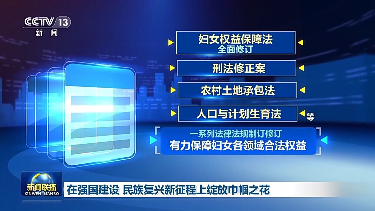 新時(shí)代,維護(hù)婦女權(quán)益,法治保障堅(jiān)實(shí)有力。首部民法典頒行,首部家庭教育促進(jìn)法實(shí)施,婦女權(quán)益保障法全面修訂,刑法修正案、農(nóng)村土地承包法、人口與計(jì)劃生育法等一系列法律法規(guī)制訂修訂,有力保障婦女各領(lǐng)域合法權(quán)益。