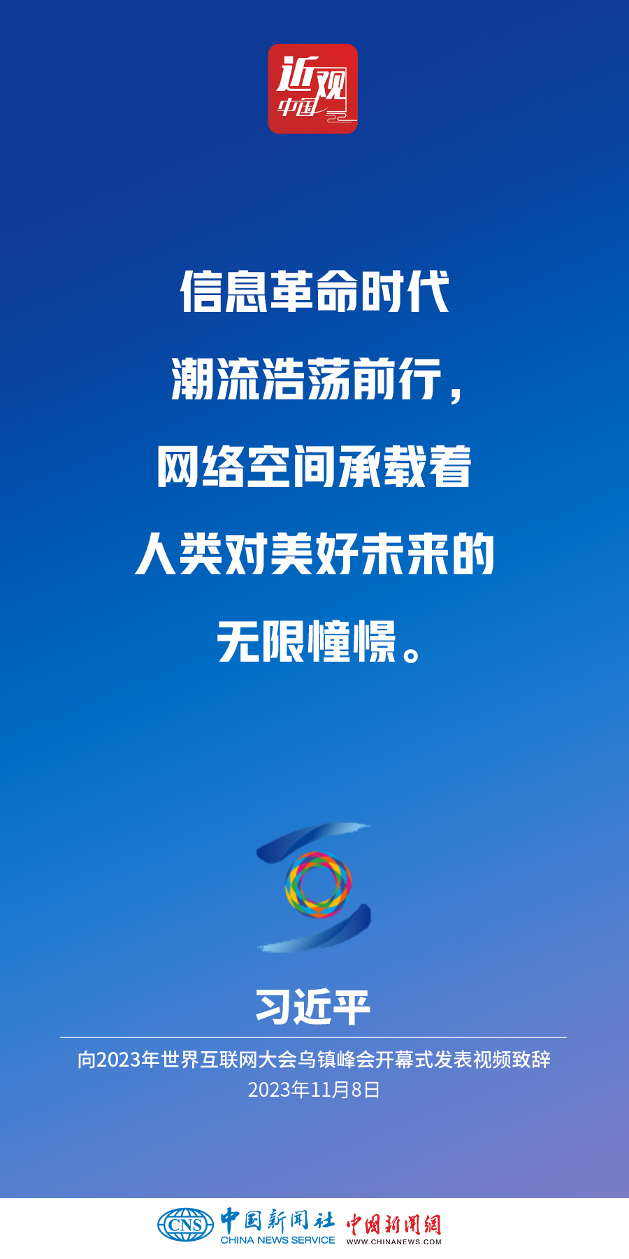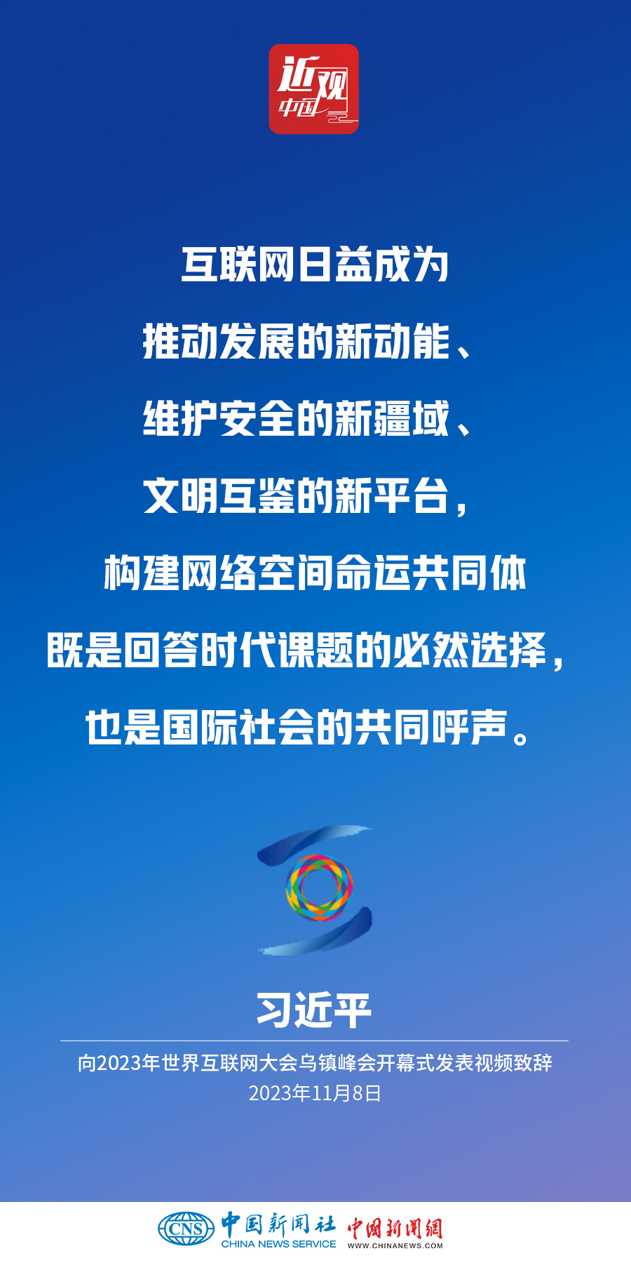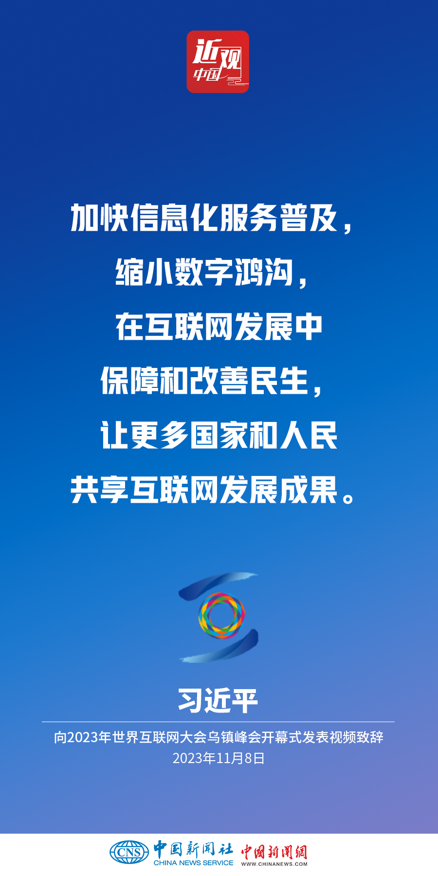 11月8日上午,國家主席習(xí)近平向2023年世界互聯(lián)網(wǎng)大會(huì)烏鎮(zhèn)峰會(huì)開幕式發(fā)表視頻致辭。他指出——