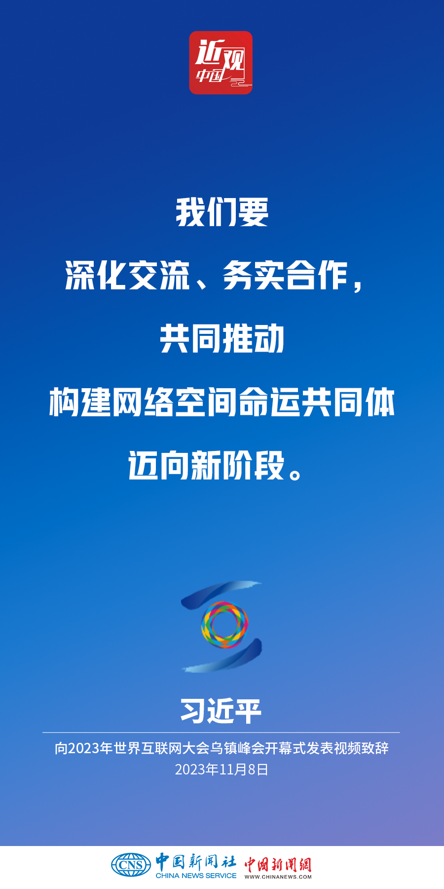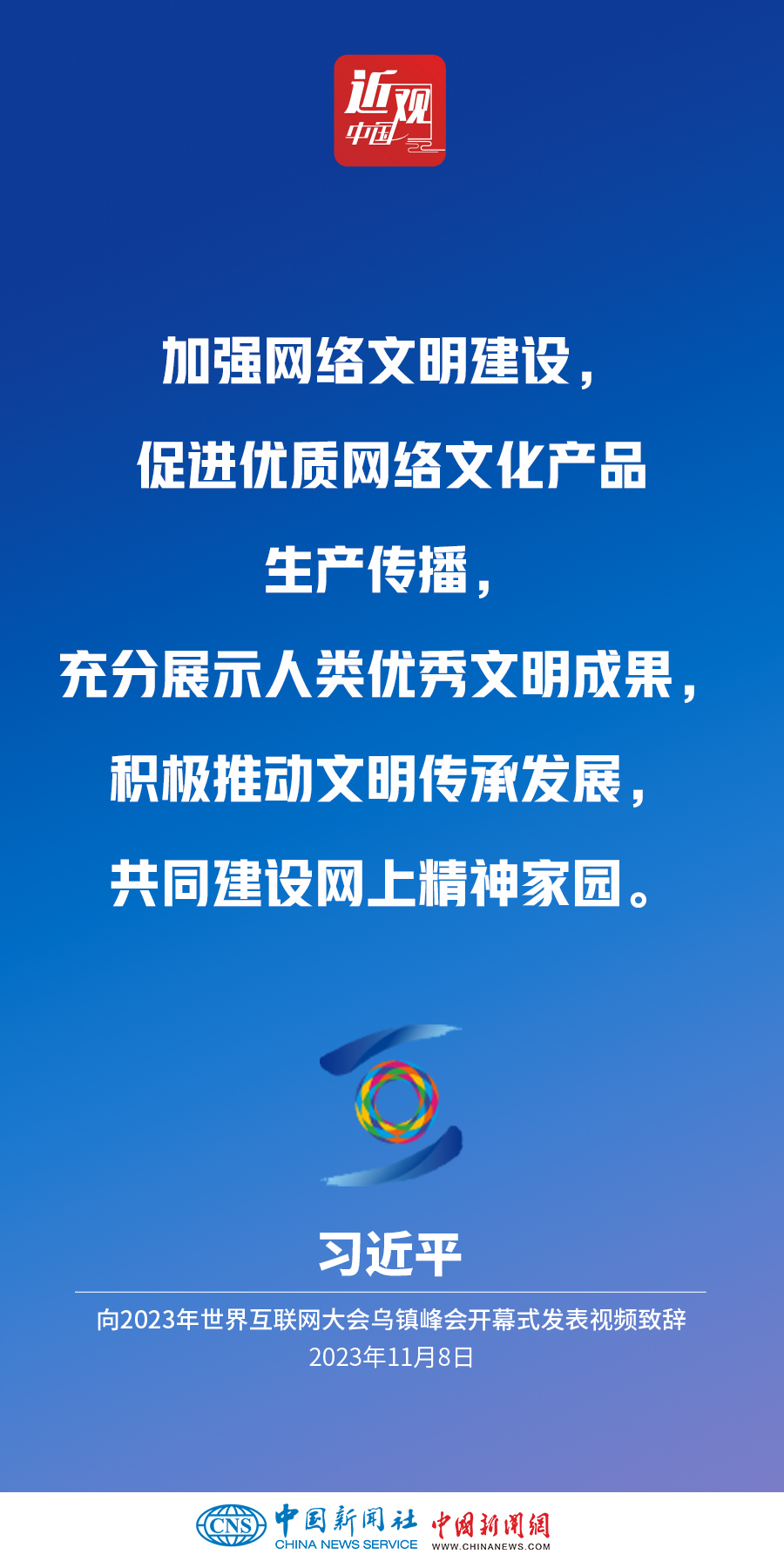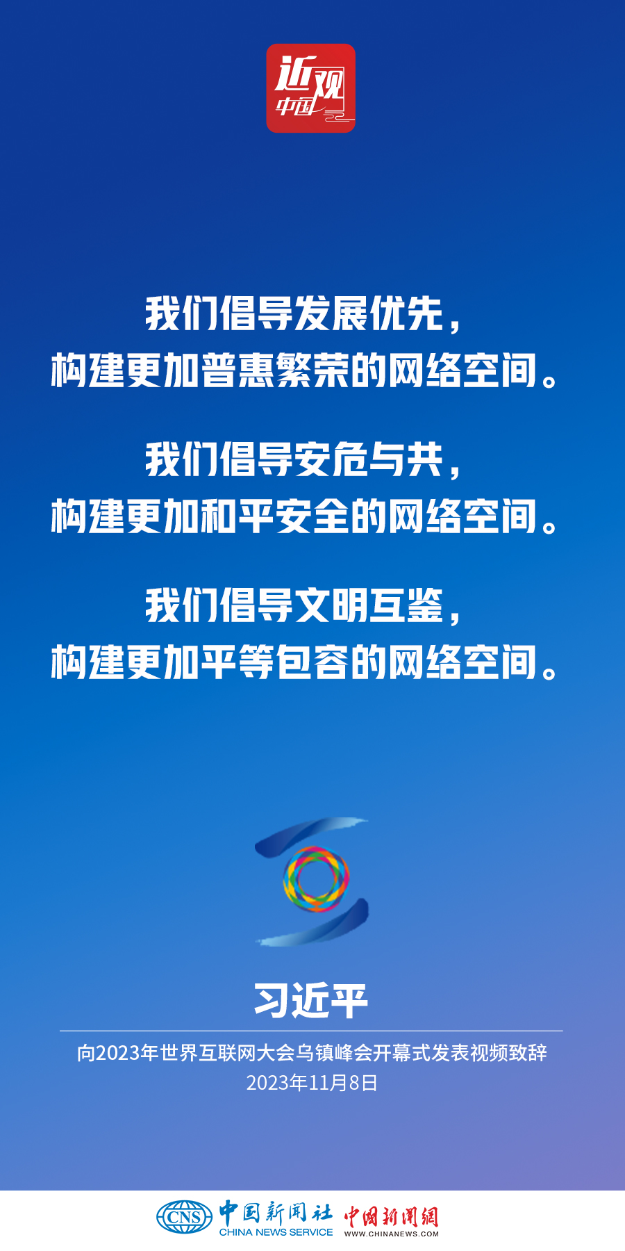 11月8日上午,國家主席習(xí)近平向2023年世界互聯(lián)網(wǎng)大會(huì)烏鎮(zhèn)峰會(huì)開幕式發(fā)表視頻致辭。他指出——