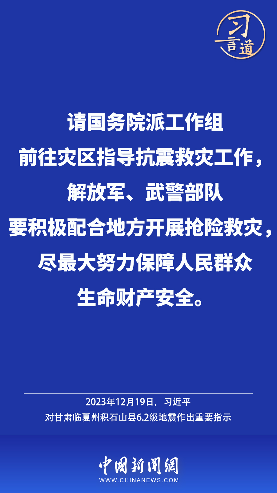 北京時(shí)間12月18日23時(shí)59分,甘肅臨夏州積石山縣發(fā)生6.2級(jí)地震,震源深度10公里。地震發(fā)生后,中共中央總書(shū)記、國(guó)家主席、中央軍委主席習(xí)近平高度重視并作出重要指示——