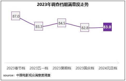 2023年元旦檔調(diào)查的5部影片均獲得觀眾“滿意”評(píng)價(jià)(≥80分)且均高于81分,與歷史調(diào)查的19部元旦檔影片相比,2023年元旦檔影片滿意度綜合表現(xiàn)較優(yōu),有4部影片進(jìn)入同期TOP10、3部進(jìn)入TOP5。