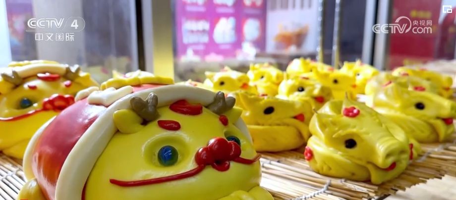 在山東,逢年過(guò)節(jié)人們也有做花餑餑、吃花餑餑的民俗。為迎合春節(jié)市場(chǎng),不少加工廠已經(jīng)在趕制帶有龍年元素的花餑餑。面點(diǎn)師們先將面團(tuán)搓長(zhǎng),再用果蔬汁調(diào)制,最后再揉捏造型?;G餑披上“紅衣”,一只可愛(ài)的“醒獅龍”就活靈活現(xiàn)地出現(xiàn)在眼前。