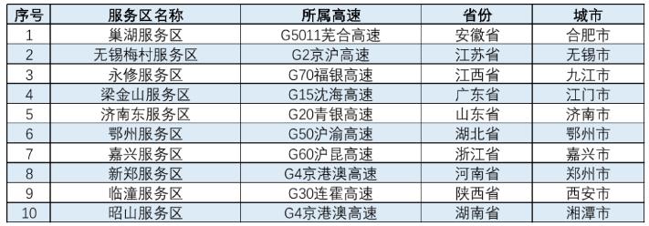 表 春節(jié)較繁忙服務(wù)區(qū) (全文圖表均來(lái)自交通運(yùn)輸部路網(wǎng)監(jiān)測(cè)與應(yīng)急處置中心官方微博)