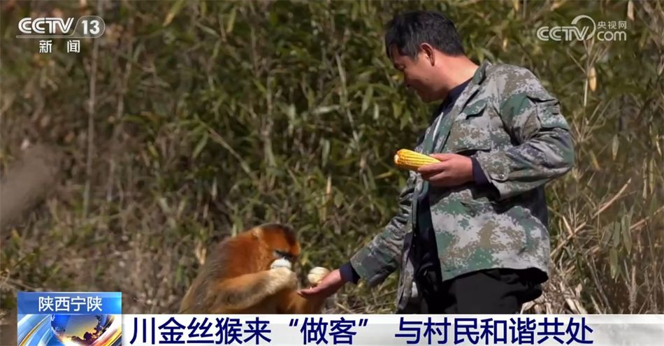 在秦嶺山區(qū)新場(chǎng)鎮(zhèn)同心村,由于臨近川金絲猴棲息地,村民們就經(jīng)??梢砸欢谩昂镒觼?lái)串門(mén)”的新鮮事。對(duì)于這些不速之客,村民們沒(méi)有刻意干擾。