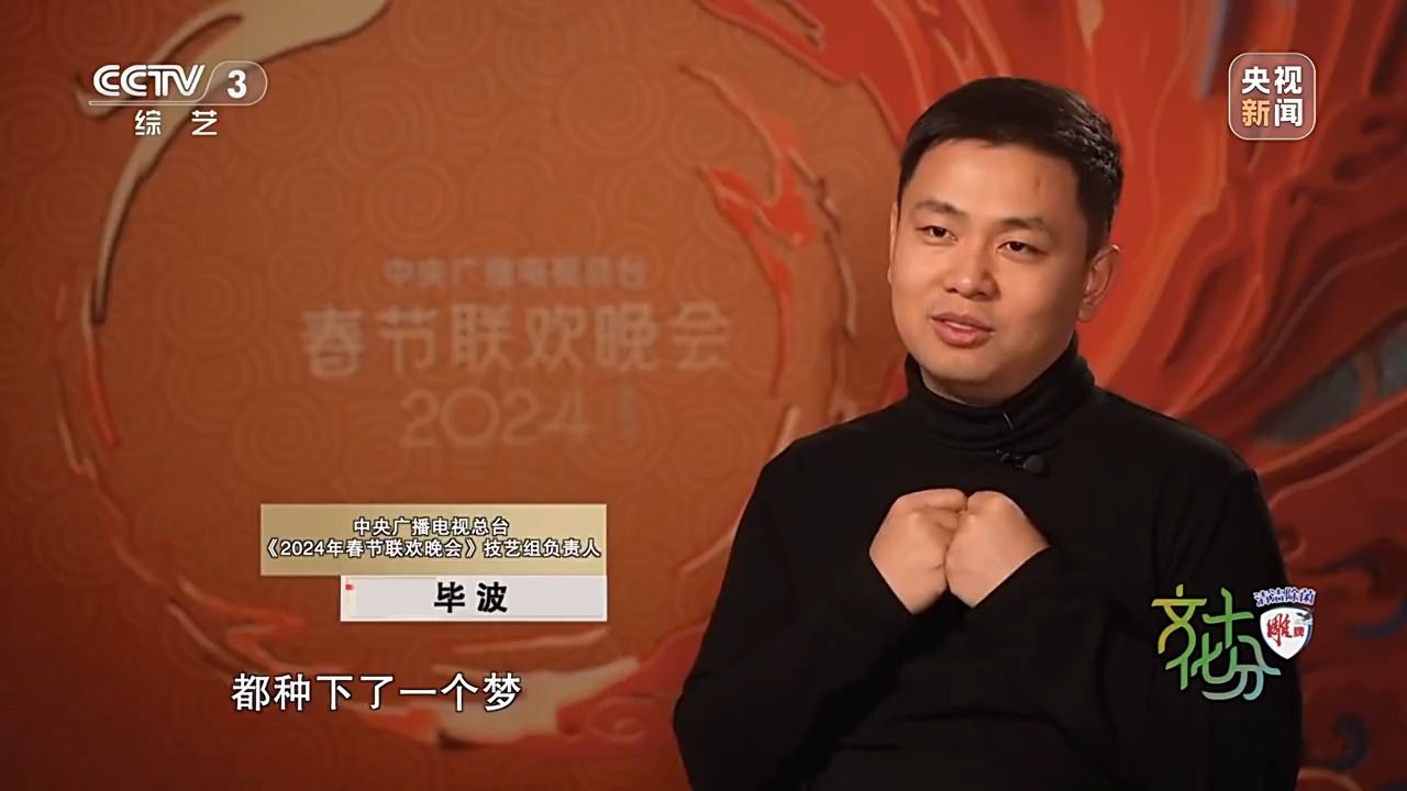 中央廣播電視總臺(tái)《2024年春節(jié)聯(lián)歡晚會(huì)》技藝組負(fù)責(zé)人 畢波:我們童年看到的很多文藝作品,其實(shí)在我們心中都種下了一個(gè)夢(mèng),過(guò)去了二三十年它開(kāi)始生根發(fā)芽。研究蛟龍?zhí)柕倪@些科研人員,他們小時(shí)候也看《哪吒鬧海》,我們甚至邀請(qǐng)了航天員去唱這首歌,他們小時(shí)候看的是《大鬧天宮》,現(xiàn)在他們?nèi)司驮谔鞂m,這是一個(gè)多么美妙的實(shí)現(xiàn)圓夢(mèng)的故事。