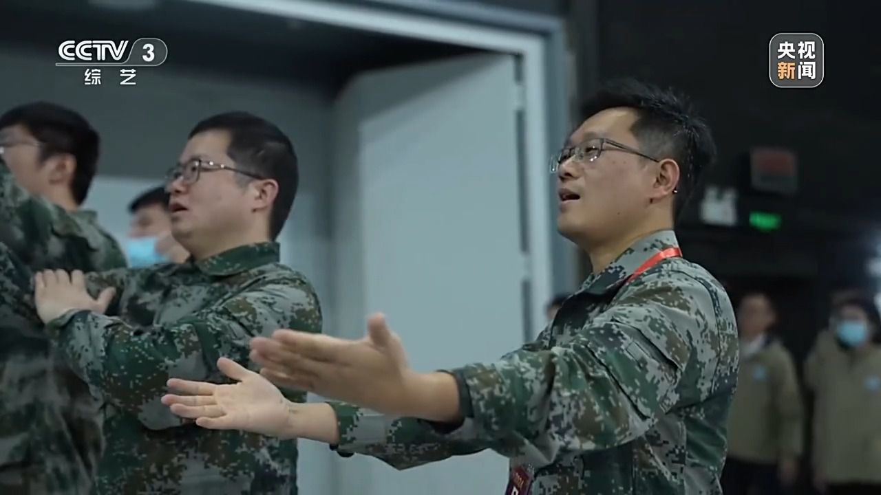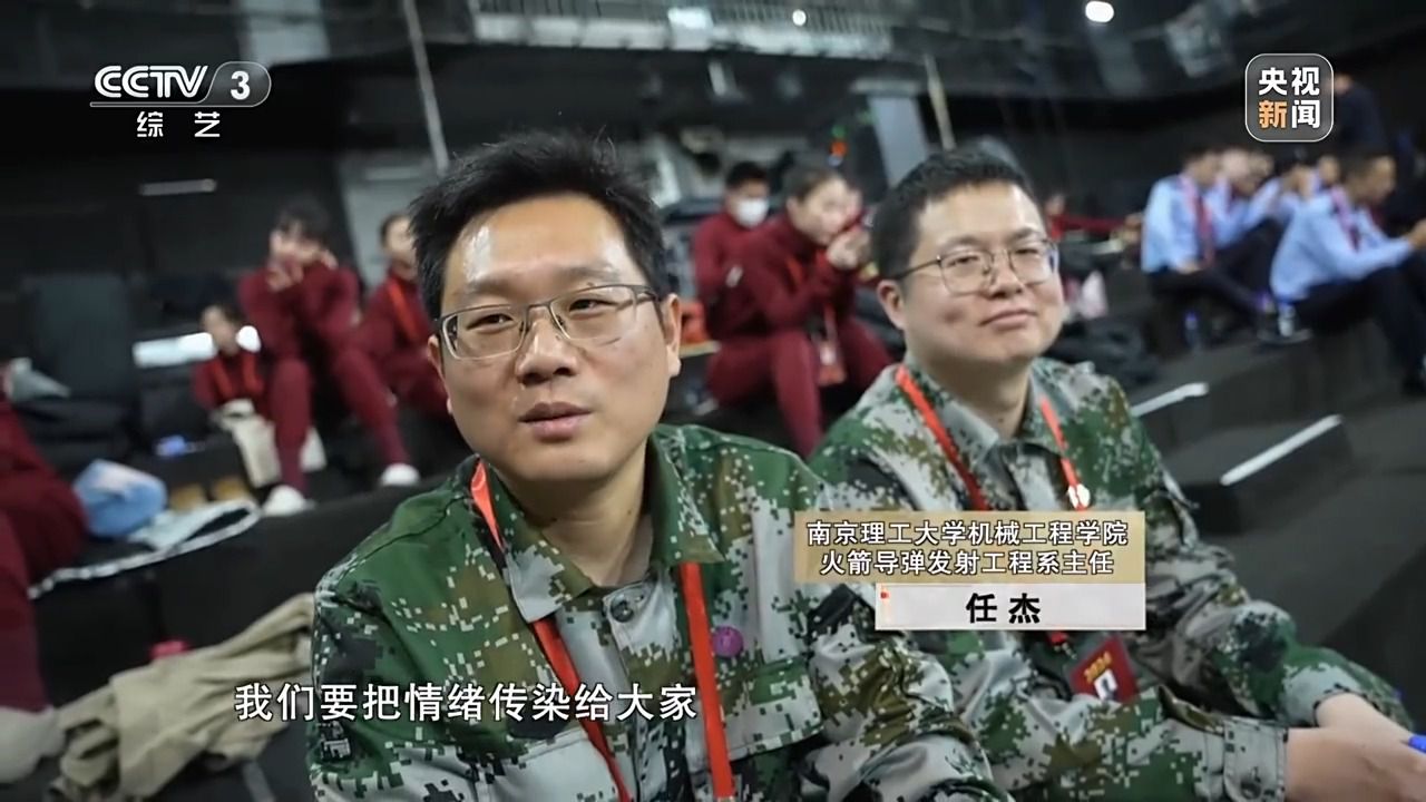 南京理工大學(xué)機(jī)械工程學(xué)院火箭導(dǎo)彈發(fā)射工程系主任 任杰:你看我們穿的這個(gè)服裝跟國(guó)防是相關(guān)的,而且又是演的貝塔這個(gè)角色,都應(yīng)該為它去增添光彩。我們?cè)谧呃壤锩娌辉诤醮蠹业哪抗?,雖然文藝表演不是我們的專(zhuān)長(zhǎng),但是我們拿出真誠(chéng)的態(tài)度,因?yàn)榛叵胄r(shí)候看動(dòng)畫(huà)片多幸福,小時(shí)候蹦蹦跳跳唱的時(shí)候,要把情緒傳染給大家。