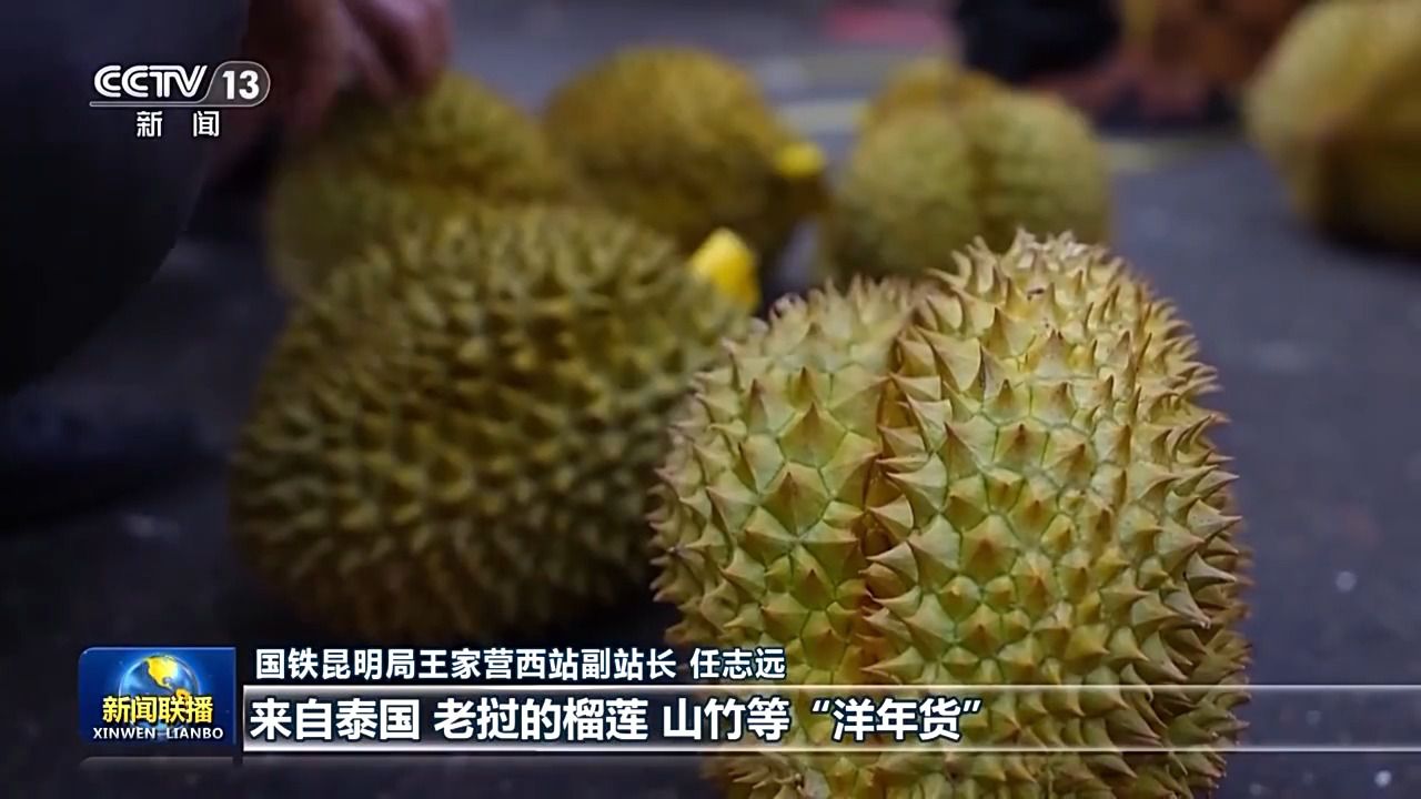 國鐵昆明局王家營西站副站長(zhǎng) 任志遠(yuǎn):今年以來,車站進(jìn)出口貨物明顯增加,來自泰國、老撾的榴蓮、山竹等“洋年貨”源源不斷運(yùn)抵。國內(nèi)的“國貨潮牌”陸續(xù)運(yùn)往東南亞國家。