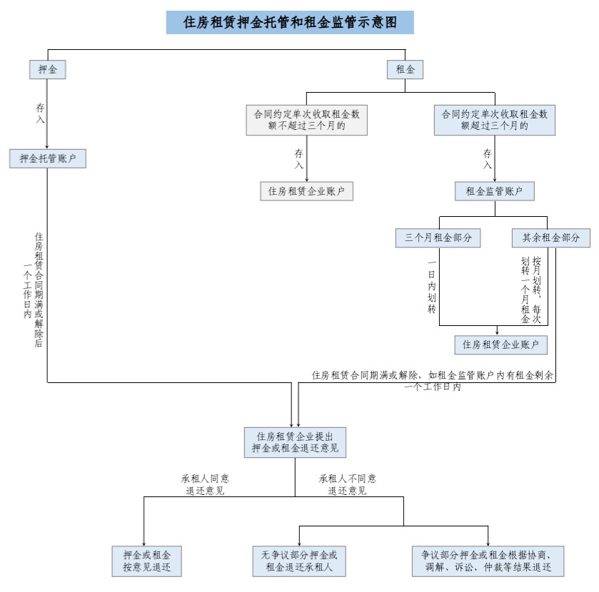 《北京市住房租賃條例》第三十六條規(guī)定,住房租賃企業(yè)向承租人收取的押金應(yīng)通過第三方專用賬戶托管,單次收取租金的數(shù)額超過三個月租金的,超收的租金應(yīng)當納入監(jiān)管,并且明確住房租賃企業(yè)收取的押金由第三方專用賬戶托管?!墩髑笠庖姼濉穱栏衤鋵崱侗本┦凶》孔赓U條例》規(guī)定,進一步制定相關(guān)實施細則,明確賬戶主體,規(guī)范押金托管、租金監(jiān)管業(yè)務(wù)流程。