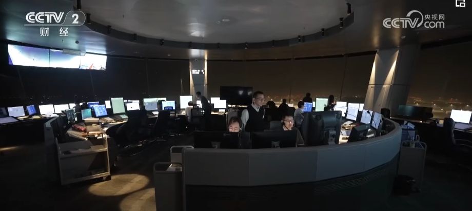 夜里1點(diǎn)多,在鄂州花湖機(jī)場(chǎng)的塔臺(tái)上,管制員正在沉著地指揮飛來(lái)的貨機(jī)進(jìn)場(chǎng),監(jiān)控屏幕上顯示著即將進(jìn)入機(jī)場(chǎng)空域的貨機(jī)有十幾架。