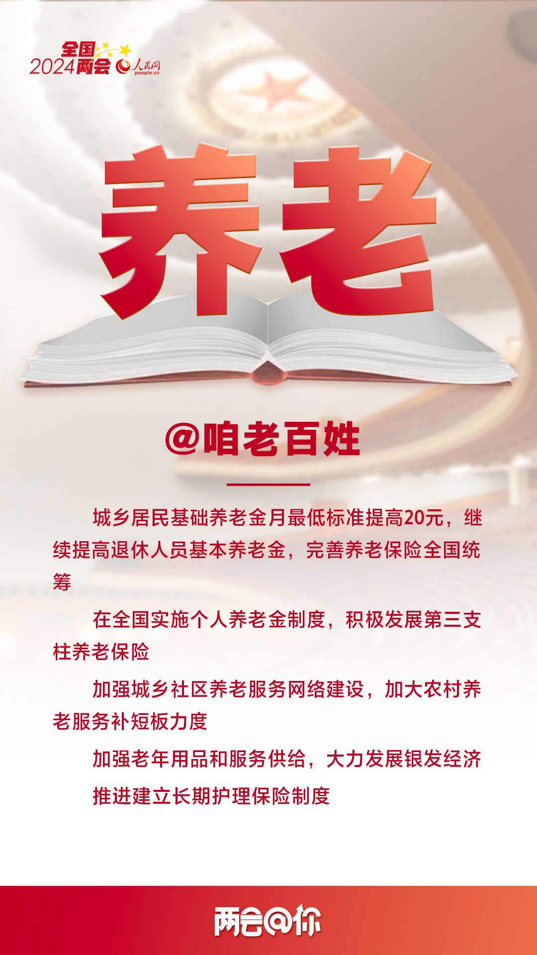 編者按:3月5日,十四屆全國(guó)人大二次會(huì)議開(kāi)幕,國(guó)務(wù)院總理李強(qiáng)代表國(guó)務(wù)院向大會(huì)作政府工作報(bào)告,提出2024年經(jīng)濟(jì)社會(huì)發(fā)展總體要求和政策取向。即日起,人民網(wǎng)推出“兩會(huì)@你”系列報(bào)道,聚焦與百姓生活息息相關(guān)的熱點(diǎn)議題,梳理解讀全國(guó)兩會(huì)上的重要民生看點(diǎn),以饗讀者。