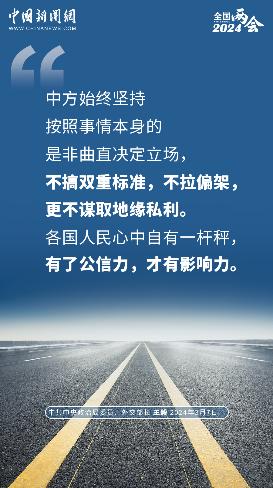 第三是堅(jiān)持客觀公正。中方始終堅(jiān)持按照事情本身的是非曲直決定立場,不搞雙重標(biāo)準(zhǔn),不拉偏架,更不謀取地緣私利。各國人民心中自有一桿秤,有了公信力,才有影響力。