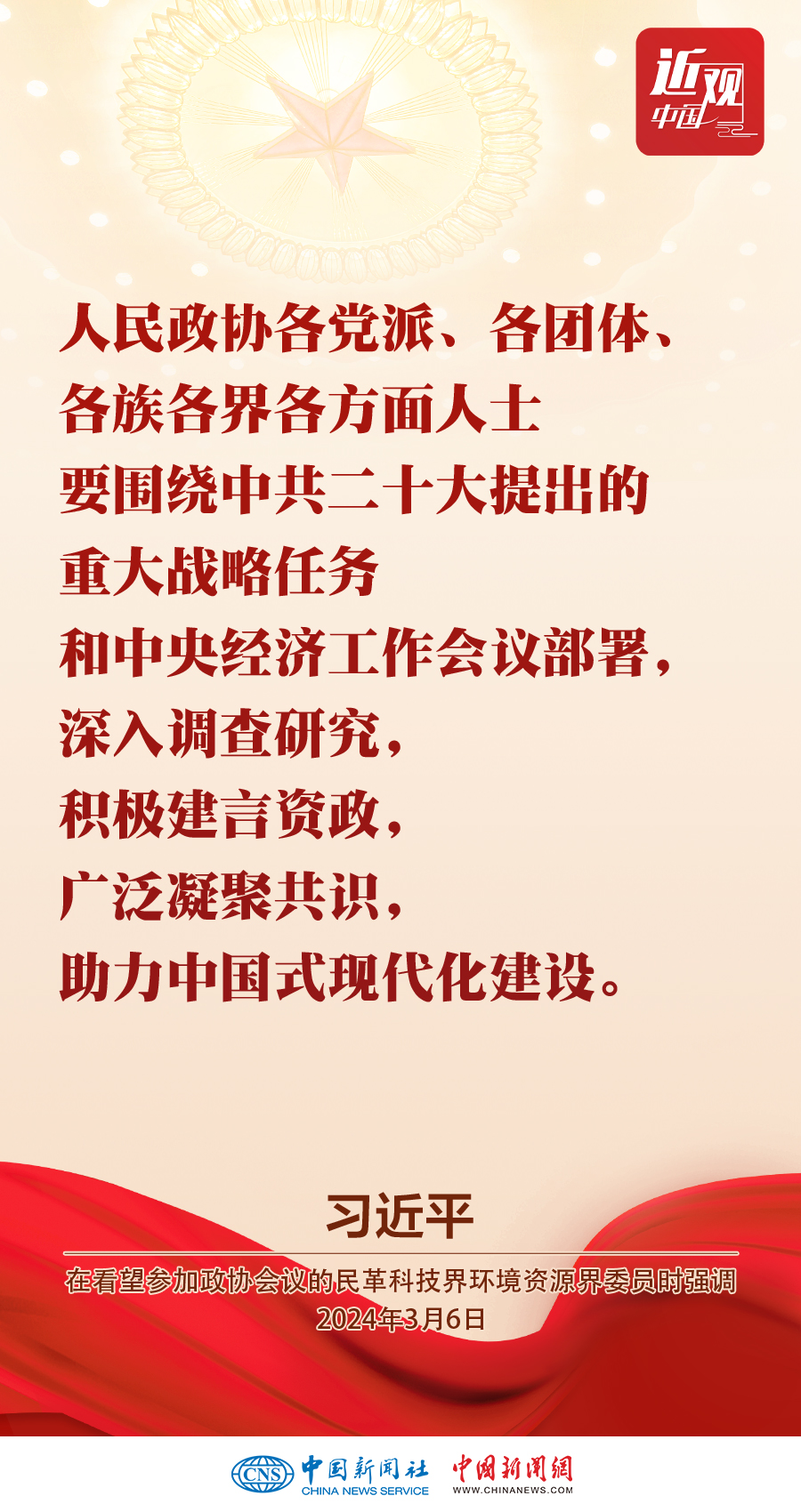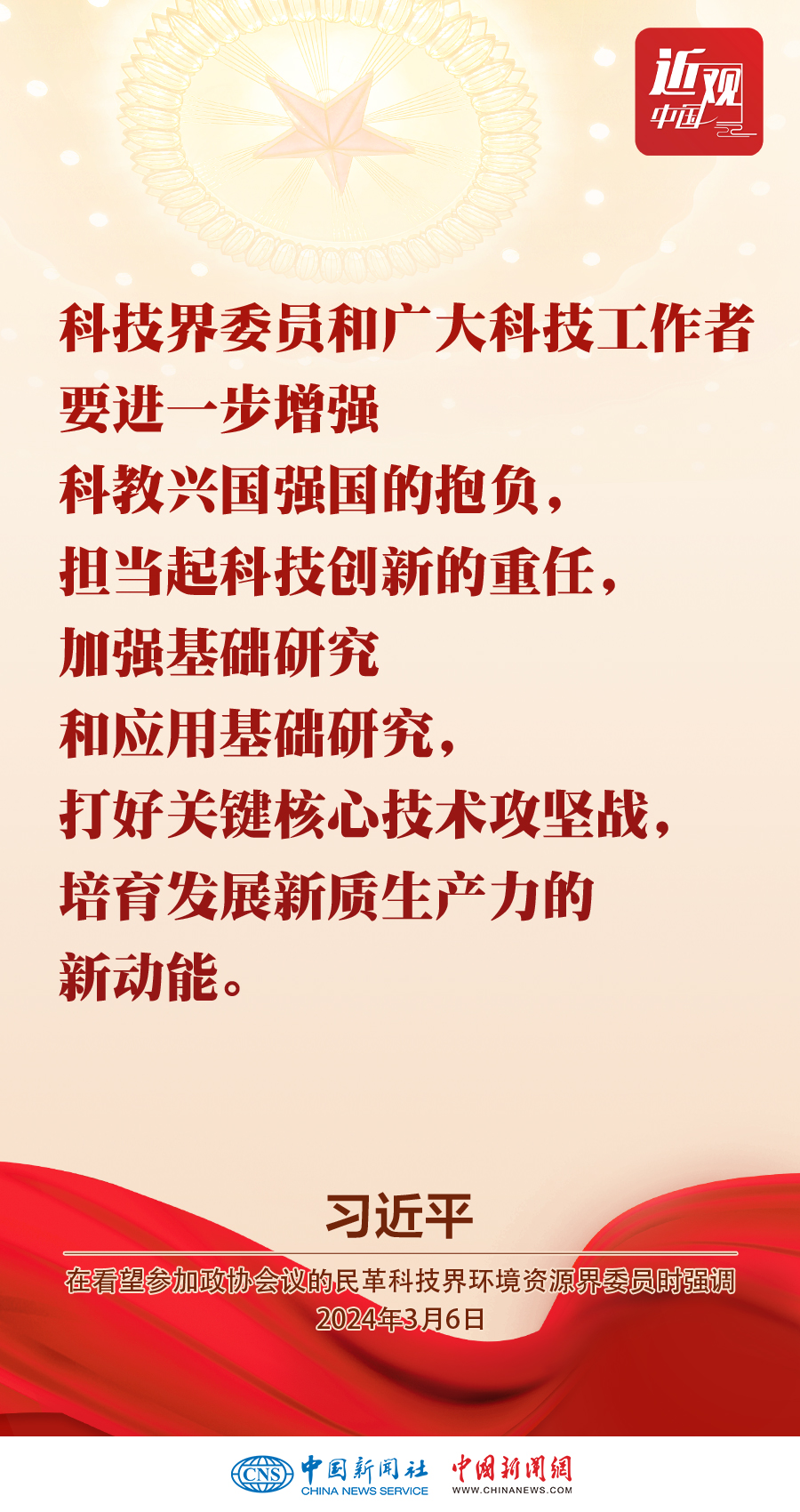 3月6日,中共中央總書記、國(guó)家主席、中央軍委主席習(xí)近平看望參加全國(guó)政協(xié)十四屆二次會(huì)議的民革、科技界、環(huán)境資源界委員,并參加聯(lián)組會(huì),聽取意見和建議。他強(qiáng)調(diào)——