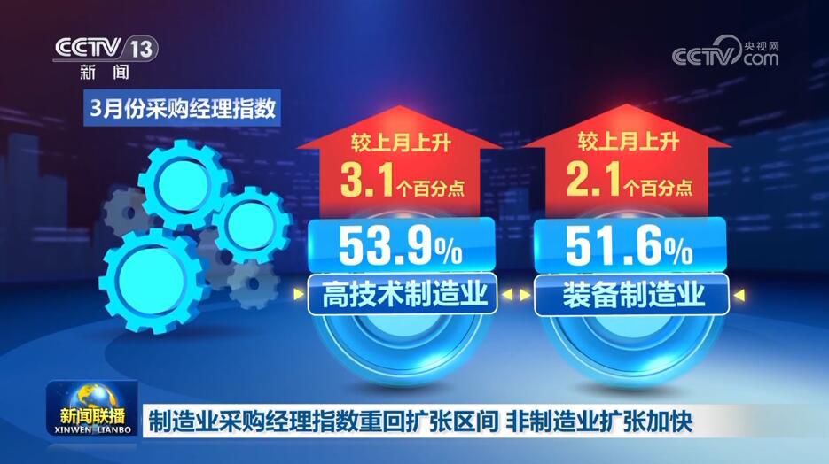 中國物流與采購聯(lián)合會(huì)、國家統(tǒng)計(jì)局服務(wù)業(yè)調(diào)查中心今天(3月31日)公布3月份中國采購經(jīng)理指數(shù)。制造業(yè)采購經(jīng)理指數(shù)重回?cái)U(kuò)張區(qū)間,景氣水平明顯提升,非制造業(yè)繼續(xù)加快擴(kuò)張。