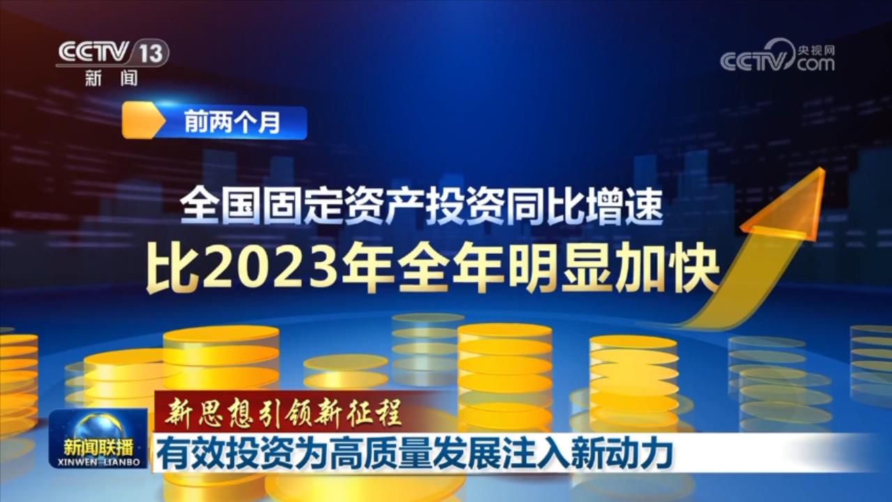 央視網(wǎng)消息(新聞聯(lián)播):習(xí)近平總書記強調(diào),要完善擴大投資機制,拓展有效投資空間。今年開年以來,服務(wù)高質(zhì)量發(fā)展成為擴大有效投資的重要著力點,投資規(guī)模持續(xù)增長,投資結(jié)構(gòu)質(zhì)量持續(xù)提升,助力中國經(jīng)濟實現(xiàn)平穩(wěn)開局。