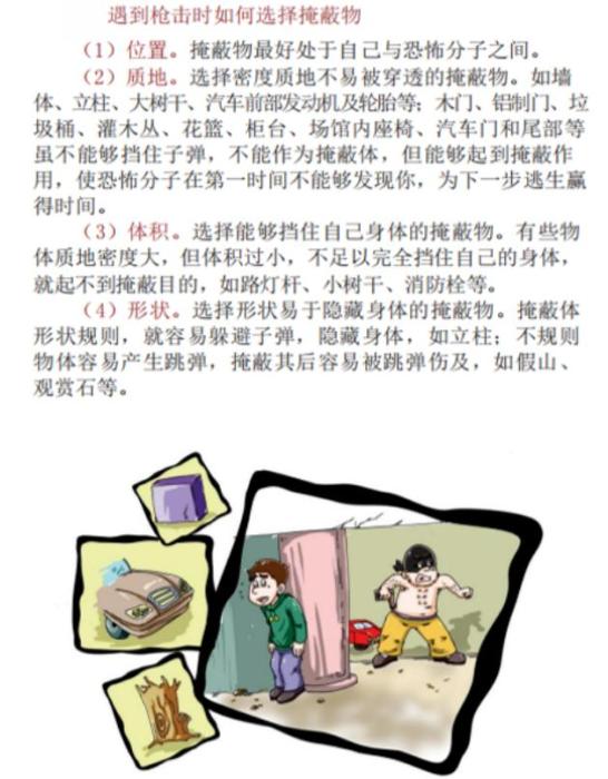遇到槍擊時(shí)如何選擇掩蔽物 圖片來(lái)源:中國(guó)駐美國(guó)大使館微信公眾號(hào)