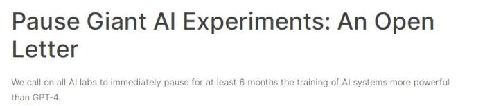 呼吁暫停巨型AI訓(xùn)練的公開信。圖片來源:“未來生命研究所”網(wǎng)站