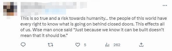 在網(wǎng)絡(luò)上,這封信也引起熱烈討論,有網(wǎng)友表示認同,人們需要知道發(fā)生了什么,“僅僅因為我們知道可以建造它,并不意味著應(yīng)該建造”。