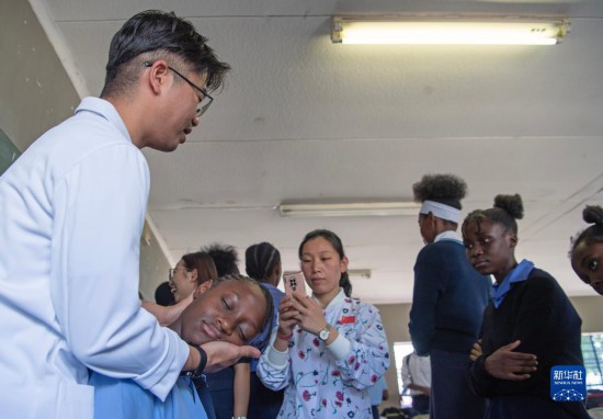 新華社溫得和克4月3日電(記者陳誠(chéng) 余音潼)第15批中國(guó)援納米比亞醫(yī)療隊(duì)隊(duì)員3日在位于納首都溫得和克的伊曼紐爾·謝菲迪中學(xué)為50多名學(xué)生帶來(lái)一堂別開生面的中文課。他們用針灸、火罐作教具,以傳統(tǒng)中醫(yī)文化為內(nèi)容,讓同學(xué)們?cè)谠⒔逃跇?lè)的沉浸式體驗(yàn)中學(xué)習(xí)中文。