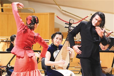 音樂會在一曲熱烈歡快的《春節(jié)序曲》中拉開序幕。兩國樂團合奏的新創(chuàng)曲目《陽光永遠照耀著我們的友誼》融合了中西音樂特色,令觀眾耳目一新;京劇《貴妃醉酒》向西班牙觀眾展現了中國傳統戲曲文化的獨特風采;西班牙歌唱家用中文和西文演唱《我愛你中國》,以歌聲傳遞了兩國民眾間的友好情誼;中國樂器笙演奏的《西班牙斗牛曲》“混搭”西班牙“國粹”弗拉門戈舞蹈,更是令人擊節(jié)叫好。兩國藝術家以樂會友、以藝通心,通過中西音樂元素的碰撞與交融,展現了東西方文化的互融互鑒。