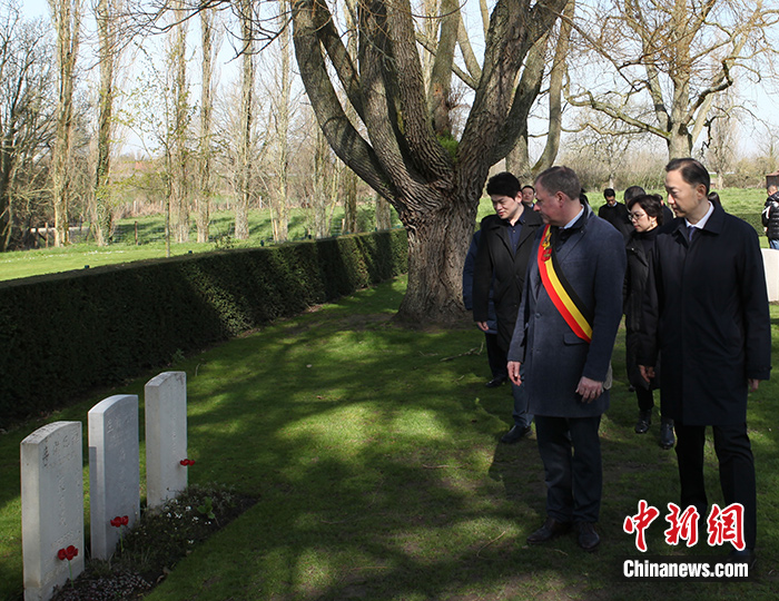 中新社比利時(shí)波普林格4月5日電 (記者 德永健)4月5日清明節(jié),中國(guó)和比利時(shí)官員來(lái)到曾經(jīng)的一戰(zhàn)主戰(zhàn)場(chǎng)比利時(shí)波普林格市,祭掃長(zhǎng)眠在此的一戰(zhàn)華工。