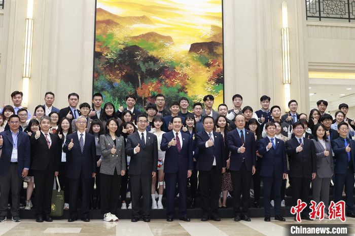 圖為座談會(huì)后馬英九與兩岸師生合影。 中新社記者 路梅 攝