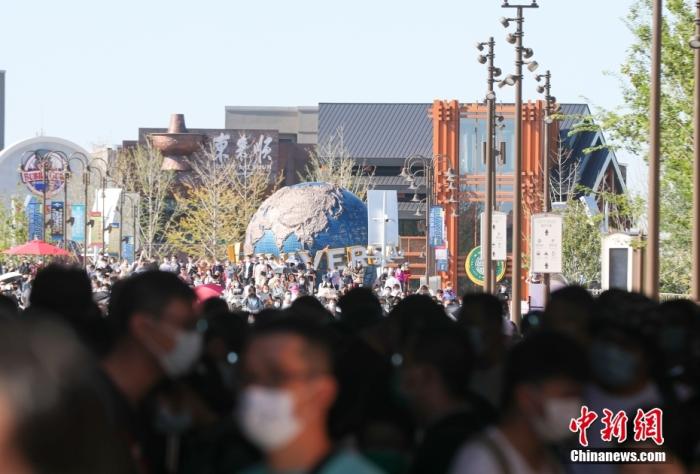資料圖:北京環(huán)球度假區(qū)內(nèi),眾多游客從環(huán)球城市大道進入園區(qū)。 中新社記者 賈天勇 攝