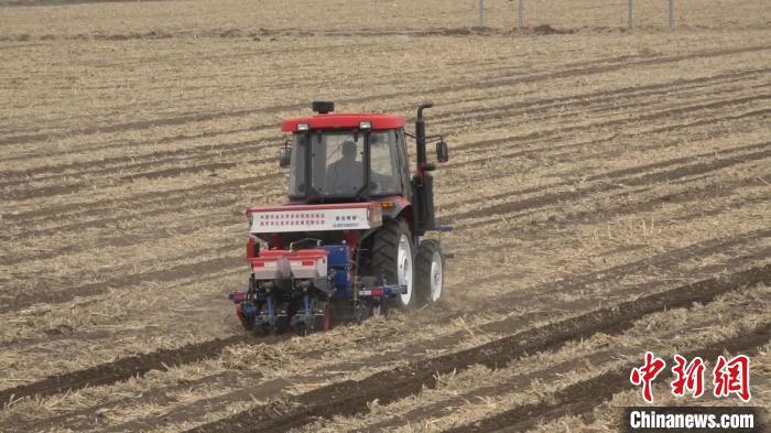 農(nóng)民正在操作新一代多功能免耕播種機(jī)開(kāi)展春耕工作?!问㈤?攝