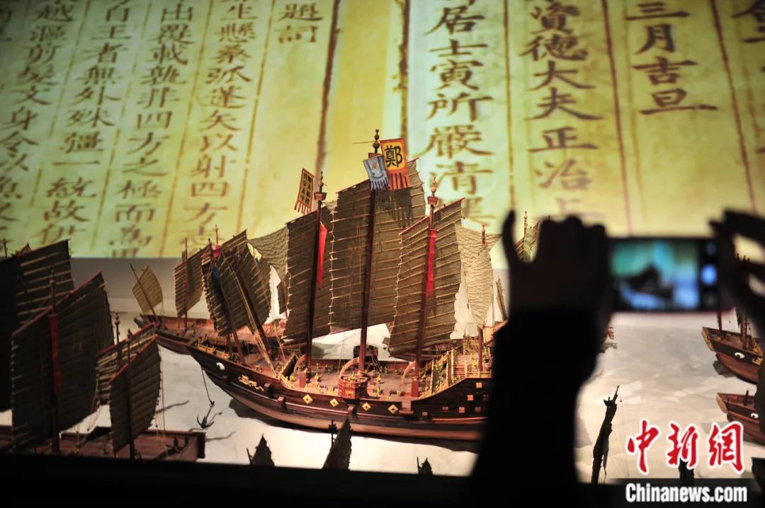 云南昆明鄭和紀念館,鄭和船隊模型吸引觀眾。劉冉陽 攝