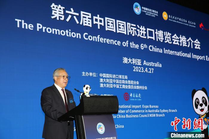 當(dāng)?shù)貢r間4月27日下午,第六屆中國國際進(jìn)口博覽會澳大利亞推介會在悉尼舉辦。中國國際進(jìn)口博覽局副局長劉福學(xué)與會并致辭。中新社記者 顧時宏 攝