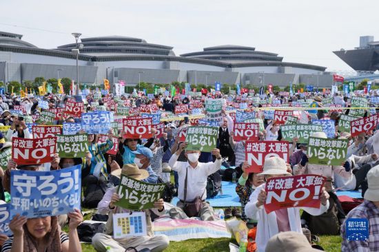 5月3日是日本憲法紀(jì)念日。當(dāng)天,約2.5萬(wàn)名日本民眾聚集在東京有明防災(zāi)公園的廣場(chǎng)上,舉行了守護(hù)憲法集會(huì),他們打出守護(hù)憲法、反對(duì)強(qiáng)軍擴(kuò)武、不要反擊能力、反對(duì)修改憲法等內(nèi)容的標(biāo)語(yǔ)和旗幟,呼吁守護(hù)憲法、守護(hù)和平。